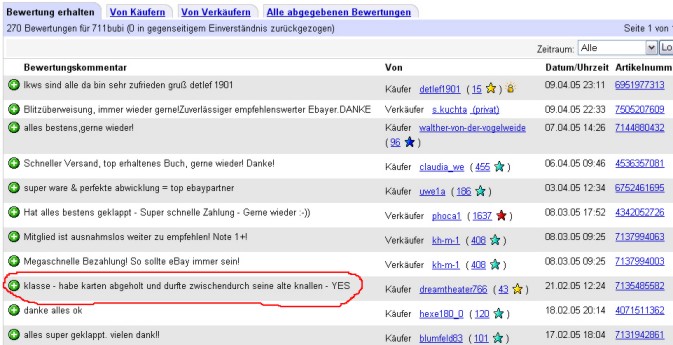 Ebay Bewertung - nette Bewertung nach Auktionsgewinn